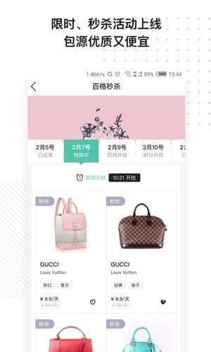 百格app是值得你信赖的品牌包包共享应用。它借助强场景化推荐,以分时租赁的形式,满足用户在不同场景下对包包的需求。该app倡导环保理性的消费方式,强调优质有品的生活态度,致力于引领女性打造新的生活方式,成为当下女性的时尚潮流指引。