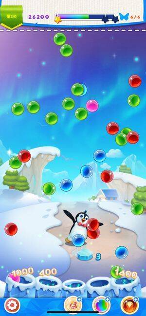 3、拥有动漫卡通画面风格,可爱企鹅角色搭配经典泡泡龙模式。
