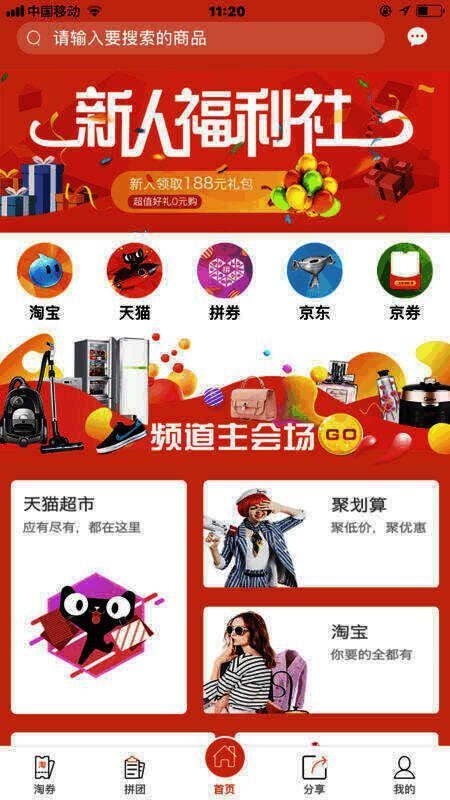 4、聚划算:同步淘宝、天猫聚划算活动产品,提供大额优惠券以及下单返利。