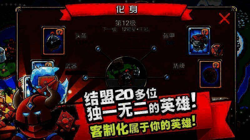 升级你的英雄:每次胜利赢取新物品,让英雄更强更残暴。