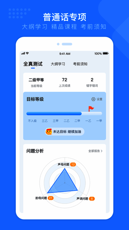 畅言国通是极为出色的语言学习平台。其畅言国通 app 储备海量普通话考试资源,借助和官方考试一致的评估技术,能迅速诊断问题并智能推荐学习内容。听力材料多元,涵盖日常对话、新闻广播等;还有大量阅读材料、写作指导与评分服务,让学习变得轻松有趣。此外,还有众多优质课程,为普通话学习和考试提供全方位助力。