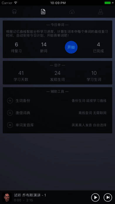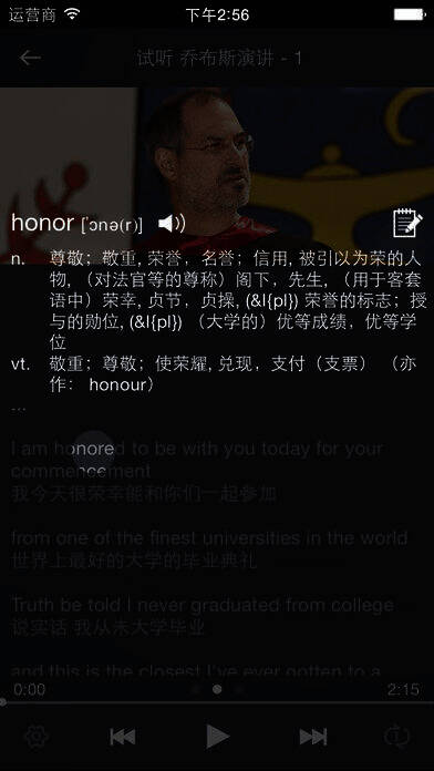 1、是练听力背单词的利器,有大量听力材料;2、同步中英字幕,支持单句、多句循环播放;3、点击单词即时翻译并加入生词本。
