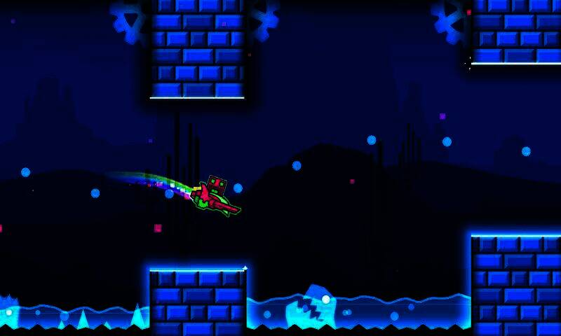 1、基于节奏韵律的平台动作游戏。2、拥有三首由F - 777音乐打造的独特关卡。3、可解锁独特的融化图标和颜色来定制角色。4、能在火箭上飞驰,改变重力等。5、可使用练习模式磨练技巧。6、在近乎不可能完成的游戏中挑战自我。