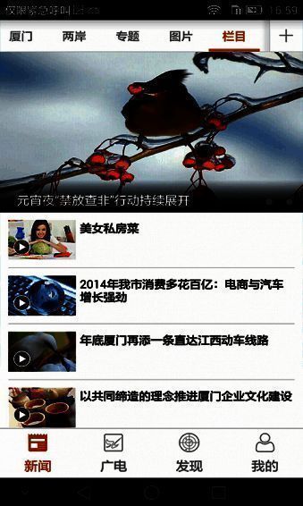 新闻聚焦厦门、热点和两岸,权威资讯及时播报;广电提供独家厦视节目,可同步直播、点播和回看;发现板块有投票活动让用户决定大事小事,还有微课可足不出户听名师讲课;我的板块能自主管理个人信息、设置预约提醒和定制个人习惯。