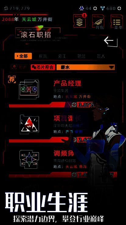 独特角色定制:玩家可自定义角色外观和技能,打造专属赛博朋克角色。互动性环境设计:游戏环境充满互动元素,玩家能与之互动,借助环境完成任务与挑战。多样化玩法:涵盖探索、战斗、策略和经营等多种玩法,满足不同玩家需求。深度社交系统:游戏内有深度社交系统,玩家可与其他玩家交流、合作或竞争,共同感受游戏世界。