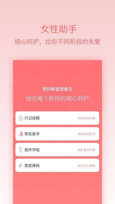 《姨妈呵护助手》是一款专为女生打造的生理月经安全期备孕神器。它不仅能提供精准的月经周期预测与记录服务,让你告别生理期的意外烦恼,还能提供多样的娱乐体验。软件内有丰富的优惠商品,让你享受购物乐趣;海量耽美小说随意阅读,还有抽奖惊喜。其特色功能涵盖月经、备孕、产后和闺蜜交流等多方面。v1.0版本修复了已知 BUG 并优化了功能。