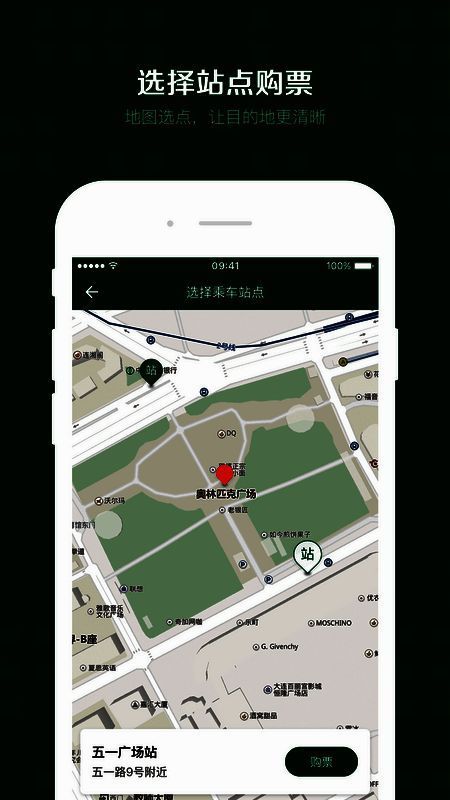 3、选择站点购票:通过地图选点,让目的地一目了然。