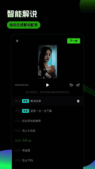 2. 智能讲解:根据短剧类型自动生成合适旁白,制作高质量视频。