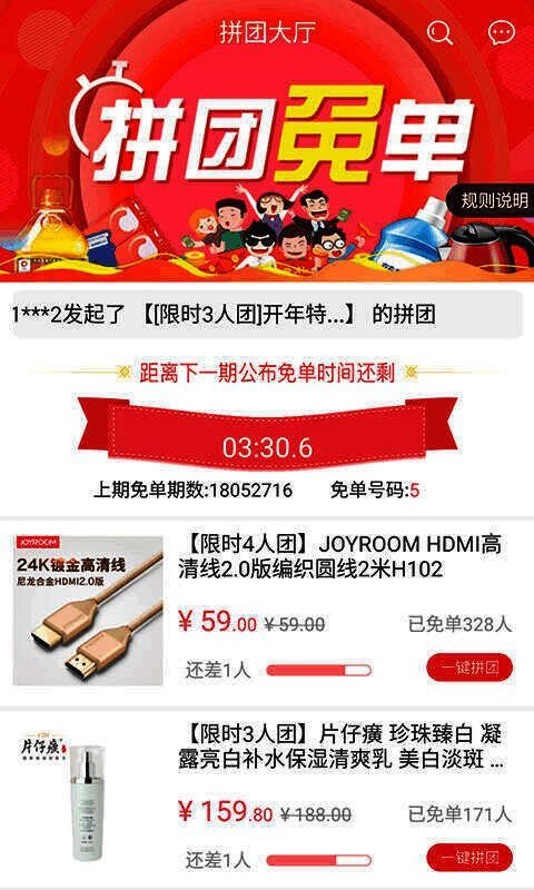 手趣购APP专注全网高性价比正品团购,拼团能享免单。我们与上千家优质企业合作,为用户带来海量正品好货。用户可通过多种拼团方式选购,参团时选0 - 11中的幸运数字,若所选数字和最新公布号码一致,就能免单。还能和好友一起拼货,分享购物乐趣,免单机率高达90%,一人猜中全团免单,快来试试!