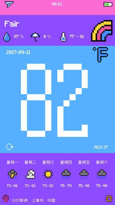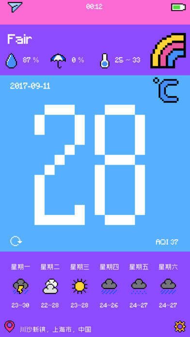 《像素天气》采用8位像素风格来呈现天气状况,模样十分可爱。不过,它提供的天气信息可一点不含糊,像温度、湿度、降雨概率、风速等都有,而且支持iPad、iPhone以及Apple Watch。