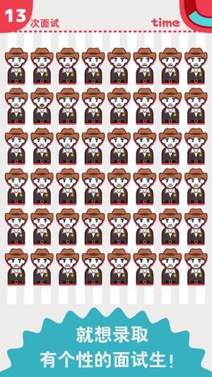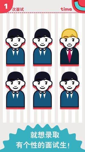 1、游戏画面简洁,众多应聘者中仅有几个符合需求,你得把他们都揪出来。