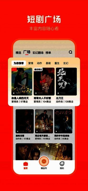 全民短剧巧妙利用短视频便捷特性,让用户在通勤、午休、睡前等碎片化时间,都能通过手机等移动设备随时随地畅享精彩故事,享受娱乐放松时刻。