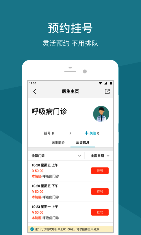 - 支持专家一键搜索,输入名字即可查看出诊信息。