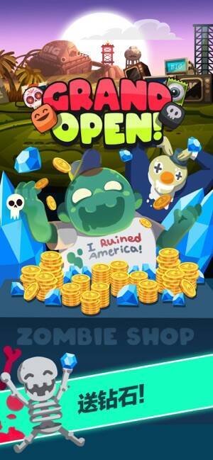 1、僵尸有从D到S级的等级排序,等级越高越强大。2、有各种不同种类和外形的僵尸供玩家获取。3、完成任务开宝箱,有稀有装备、宝石、钻石和金币等。