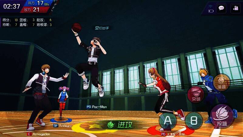 青春篮球是一款体育竞技类篮球动作游戏。它画面精美,操作手感佳,技术深度足。游戏秉持公平原则,能让你匹配到实力相当的对手一起游戏交友,杜绝人民币玩家的碾压。技能分进攻、防守、通用三类,可自由搭配创造专属套路。比赛会根据表现给予积分,还能消耗积分抽取应援团卡牌提升实力。
