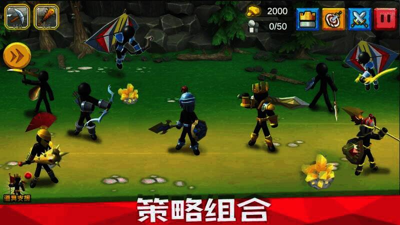 2. 玩家要一边组建专属火柴人战队,一边指导它们进入战场。