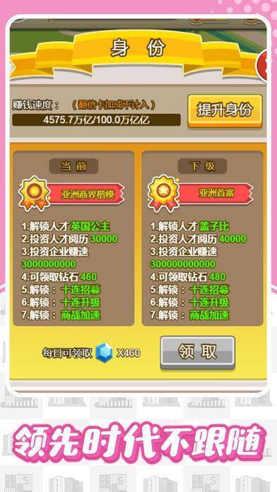 《这就是首富》属于新式的放置点击类手游,玩家操控角色白手起家,从最基层的快递员做起,逐步赚钱,开烧烤店、机械厂,直至最后拥有核电站,努力成为世界首富。在这个自由的模拟养成世界,你从平民起步,凭借灵活操作收集金币奖励,开设更多小店,努力成为城市大亨。
