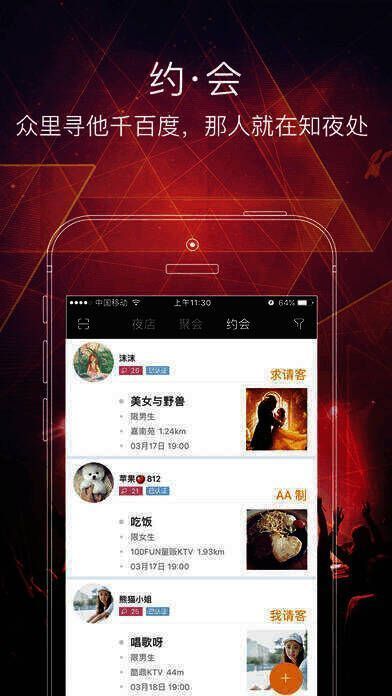 4、发现附近的人来打发无聊时间,相约一起玩转夜店;
