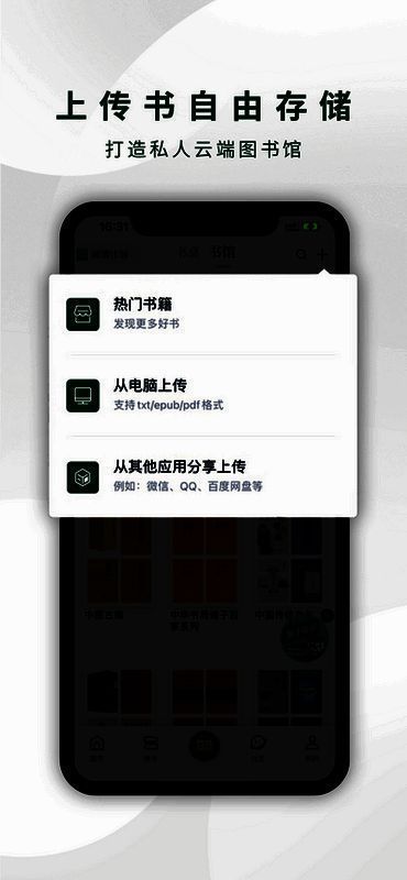 书籍管理:拥有超强的云端书籍管理能力,为广大书友提供免费的云端私人藏书服务。书友可便捷地上传书籍、管理书籍分类,公开的书籍可供借阅,私藏的书籍他人无法获取。通过搜索和借阅导引能快速找到想读的书,还能随时清除缓存,不占手机空间,让内存无负担。