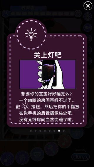 玩《杜蕾斯宝贝》能让你瞬间体验当爸妈的感觉,喂奶、陪玩、唱摇篮曲、换尿布,这些事本就够让人烦的了。更让人头疼的是,宝宝还会不定时、不定期地随机大哭。要是你能坚持一个星期应对这些状况,就可以向亲朋好友炫耀自己是富有责任心的好爸妈啦。
