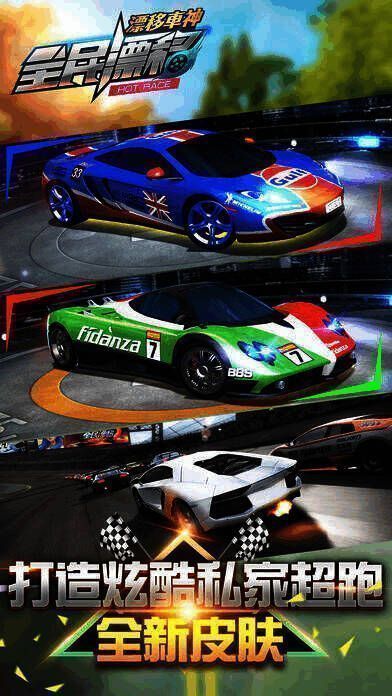 4、个性装扮:拥有更加炫酷的涂装皮肤系统,让你的爱车独树一帜! 五大区域,20款车贴、十种颜色可随心搭配,打造独一无二的专属赛车。赛车具有不同属性,通过改装升级可培养出完美超级赛车。赛车表面的「实时反射」与「反锯齿效果」,让画质格外出色。