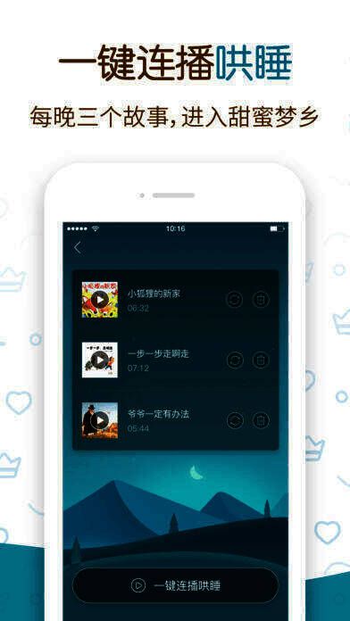 5、「一键连播哄睡」功能专为宝宝准备哄睡故事,轻松进入哄睡模式。
