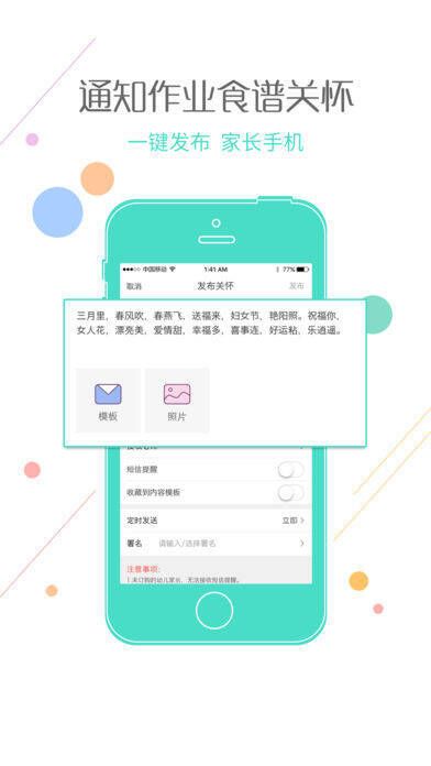 1、家园互动:支持短信发送、IM即时聊天,随时随地搭建教师与家长的沟通桥梁,让家园沟通无缝衔接;