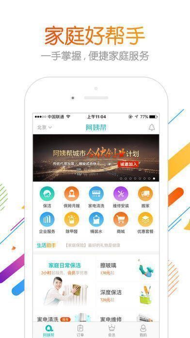 2、阿姨帮专注家庭和企业服务,关注服务品质。中国最给力最到位的家政平台APP;