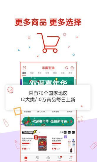 丰趣海淘 app 为中国消费者提供轻松快速一键购买全球商品的购物服务,倡导“是正品、更上品”的潮流购物理念。主营海外商品类目丰富,涵盖母婴儿童用品、美妆个护、食品生鲜、保健品、3C 家电、流行鞋包、家居生活等上万款式,提供多样居家选择。