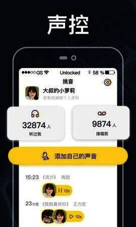 挑音 app 是新一代陌生人交友利器。它主打接唱配对、声控交友,让你在此既能收获欢乐,又能结识志同道合之人,排解寂寞。人类对美妙声音的喜爱出自本能,声音动听的人会带来惊喜,让人忍不住多交流。选择喜欢的人接唱,若对方回应,则配对成功,自动成为好友。