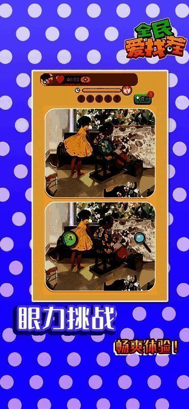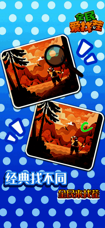 这是一款经典的找茬游戏,风格各异的插画看似相同实则不同,答案往往藏在细微之处,非常考验眼力和脑力。玩家要凭借敏锐的观察力和出色的视力,找出不同,闯过一个个难关。