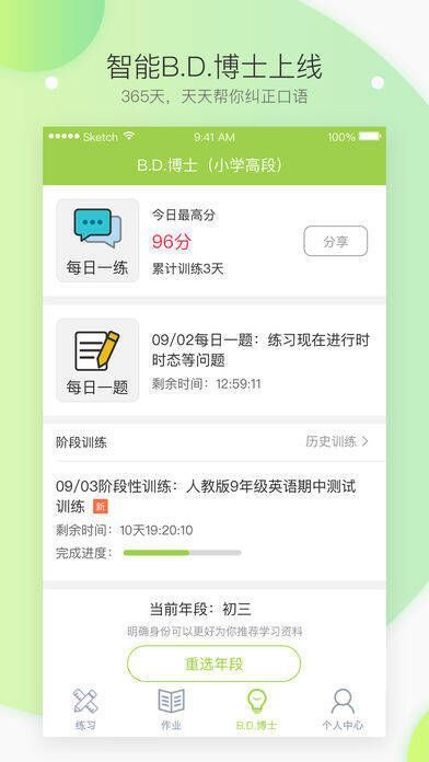1、B.D.博士模块全新改版,新增每日一题和阶段训练两大模块;