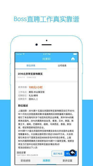 这是大学生求职兼职的得力助手,拥有海量经严格审查、来源可靠的兼职信息。用户可直接在线报名,一键致电雇主预约面试,按兴趣找工作,自己赚取外快。