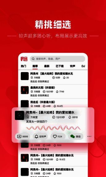 这里有各类好听的铃声,你可全部下载用作手机铃声。每日听歌、完成任务能获金币奖励,还可兑换成现金。