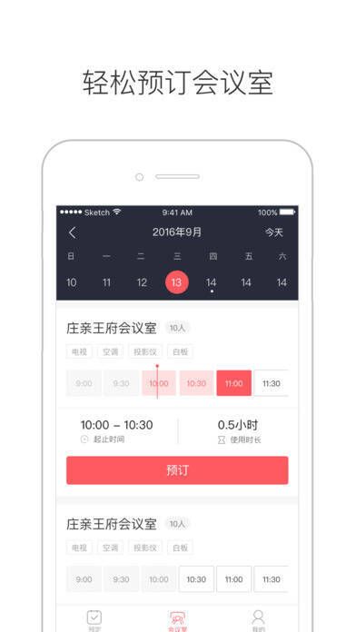 2. [会议室助手]:打开后可迅速搜索会议室,10秒即可完成预订。