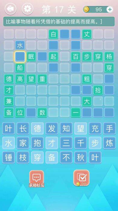 1、这是经典的益智游戏,规则简单,寓教于乐,老少皆宜。2、能帮助孩子积累成语,还可打发时间、增添乐趣。3、每次挑战都趣味十足,可让玩家了解更多成语,益智又好玩。