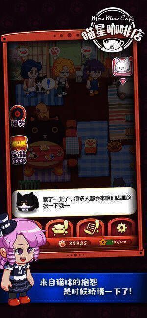 猫咪会帮你招待客人,不过你也得做出好喝的咖啡、饮料和美味的点心。努力经营,你有望成为咖啡大亨。要是累了,不妨在这充满咖啡香和猫咪陪伴的世界里放松一下。卡通风趣的游戏画面,与可爱猫咪一起经营咖啡厅,想想就觉得美妙无比。喜欢此类游戏的玩家千万不要错过。