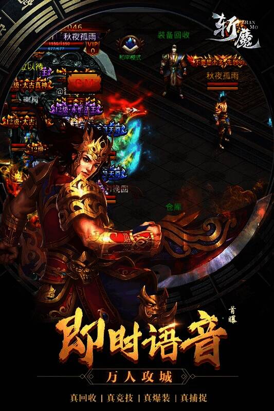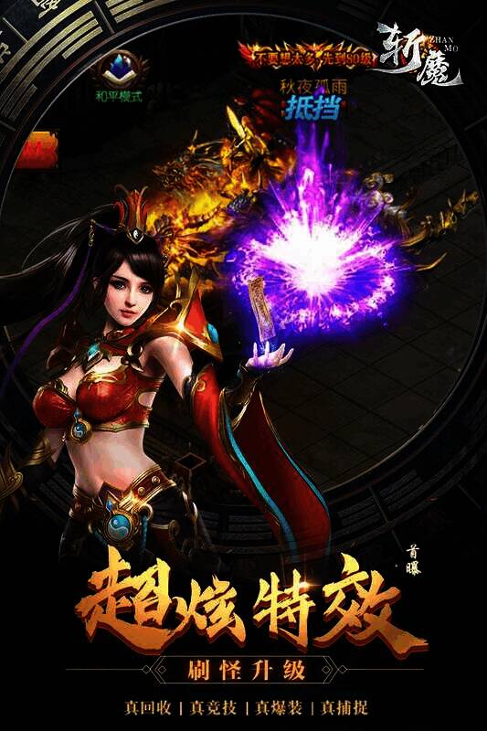 《斩魔》是一款暗黑风格的 2DMMORPG 手游。暗黑恐怖力量肆意横行,为守护人间安宁,勇士们拿起武器保卫家园。游戏画面精致,打击感强,结合背景设计的技能让玩家充分感受战斗激情。还有超酷炫的坐骑、威武神装、靓丽羽翼和拉风称号系统。上百种 boss 可爆出各类装备,千人攻占城池有巨额奖励,玩家还能自由交易卖装备回收元宝,在与兄弟并肩作战时感受收获的快乐。