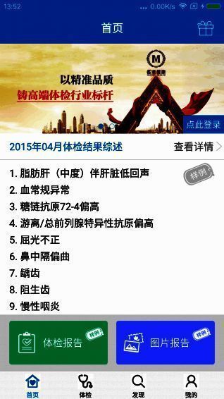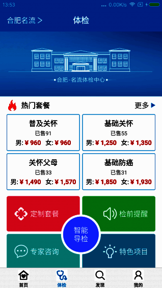 2、“体检定制”功能全新升级为“健康商城”,专家会为您量身定制个性化的体检方案,让体检更科学,避免过度体检。同时增加了“团体用户定制”,团体体检也能实现个性化定制!百余种体检套餐全新上线,总有一款适合您;