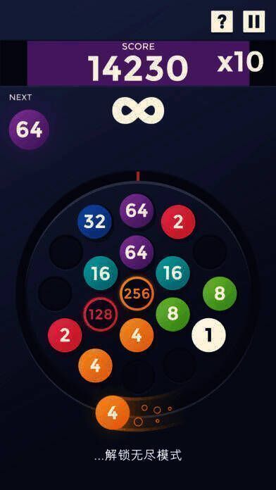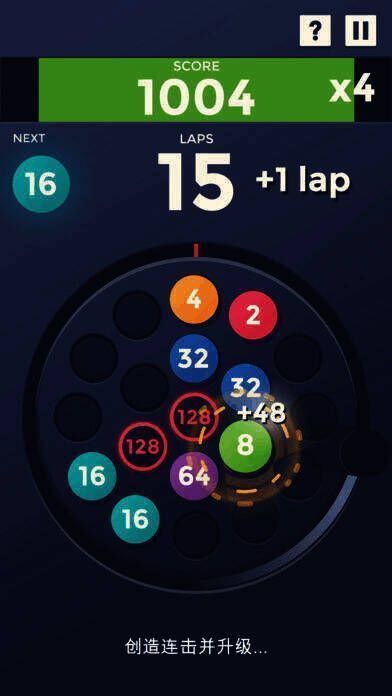 圆板上独特的匹配合并玩法,点击发射数字球,碰撞合并数字创造连击拿高分,合并颜色数字升级,抓准时机有连锁效果;颜色与数字融合,匹配同色数字,切换颜色增加连锁机会。