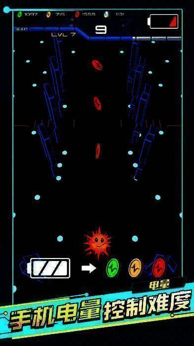 3. 躲避关卡障碍物延长生存时间,还能调整电量控制难度。