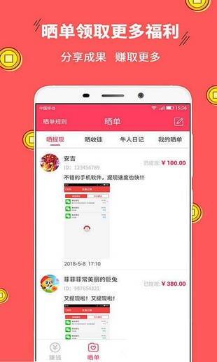 它是非常适合的试用赚钱平台,只需满10元就能提现,而且几秒内即可到账。