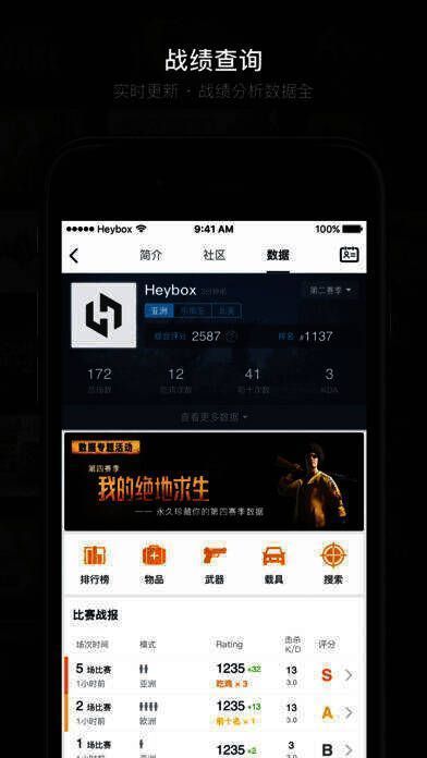 《小黑盒》是一款实用的绝地求生战绩查询应用,它能为玩家提供专业又便捷的掌上游戏战绩查询服务,让玩家随时随地都能查看自己的游戏战绩,还有诸多便捷功能等你探索。