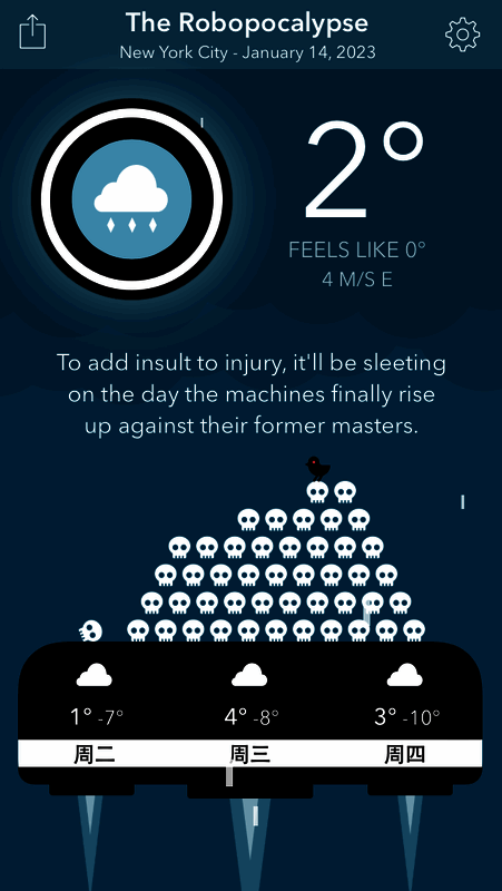 CARROT Weather是一款极为实用的天气应用程序,能为用户提供精准的天气提醒与预报服务。随着iOS 11官方版本发布,它还更新了AR功能,十分有趣。