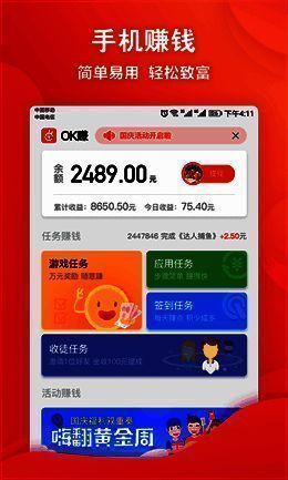 ok赚app下载苹果版是一款超有名的手机赚钱软件,作为老牌手赚软件,它有超多靠谱活动。你能在这里挑选适合自己的任务,完成后即可领取丰厚奖励。而且软件提现十分方便快捷,支持绑定微信或支付宝。