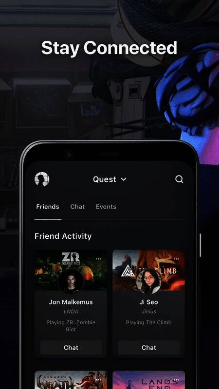 该移动应用程序最初是为三星Gear VR和Oculus Go设计的,它允许任何一款头显的用户下载视频游戏、查看活动并和朋友联系。如今,所有这些功能都适用于Oculus Rift,其主要功能是用户能浏览商店并远程安装内容,等回家就能直接使用。