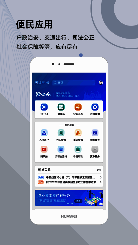 这是由天津市政府重新优化改编的新型综合民生服务软件,市民能够随时随地浏览最新的政府资讯。同时,软件涵盖社保查询、公交查询、证件办理、手持挂号、预约挂号等上百种常用功能。政府旗舰店改版后,为用户带来更贴心的政务服务体验。