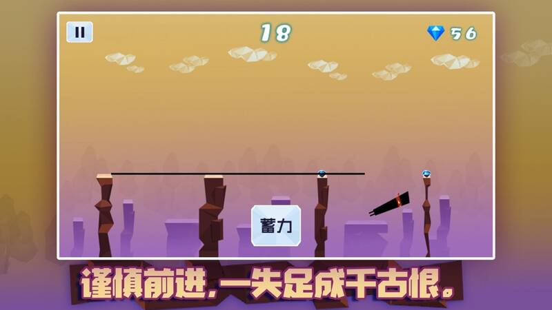 3、只需要手指按压屏幕就能闯关,蓄力的时间长短决定跳跃的距离。