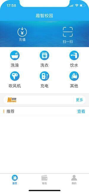 学生可以进入无卡校园消费生活,让校园生活更加美好;趣智校园为大学生提供洗澡、洗衣、饮用水、吹风机、充电等服务。你可以通过应用程序扫描宿舍的沐浴设备开始沐浴。它非常方便快捷。它是大学生校园生活必不可少的工具;你所有的沐浴消费数据app都会自动显示给你,每次都能清楚知道你的消费情况,而且消费是透明的;您可以使用支付宝直接在线充值个人账户,非常方便。您需要任何脱机排队和充电。请快速下载体验。