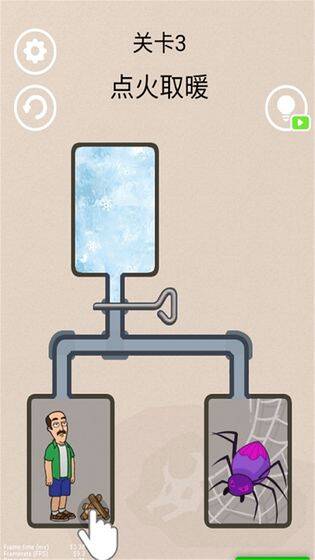 救出老头,不然他就冰火两重天了。《冰封蜘蛛》是一款非常好玩的解谜闯关的游戏。冰封蜘蛛游戏中拥有着非常多的游戏关卡等你来挑战,你要大开你的脑洞,想办法在冰封出蜘蛛,但是一定要保证老头的安全,因为关卡中会有冰与火以及蜘蛛侠的威胁,冰与火只能用来消灭蜘蛛,但是千万不能伤害到老头哦。